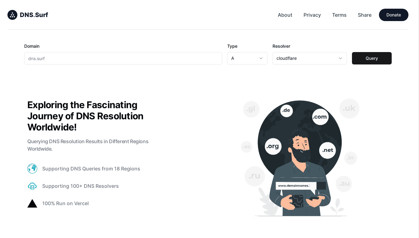 DNS.Surf Querying DNS Resolution Results in Different Regions Worldwide.